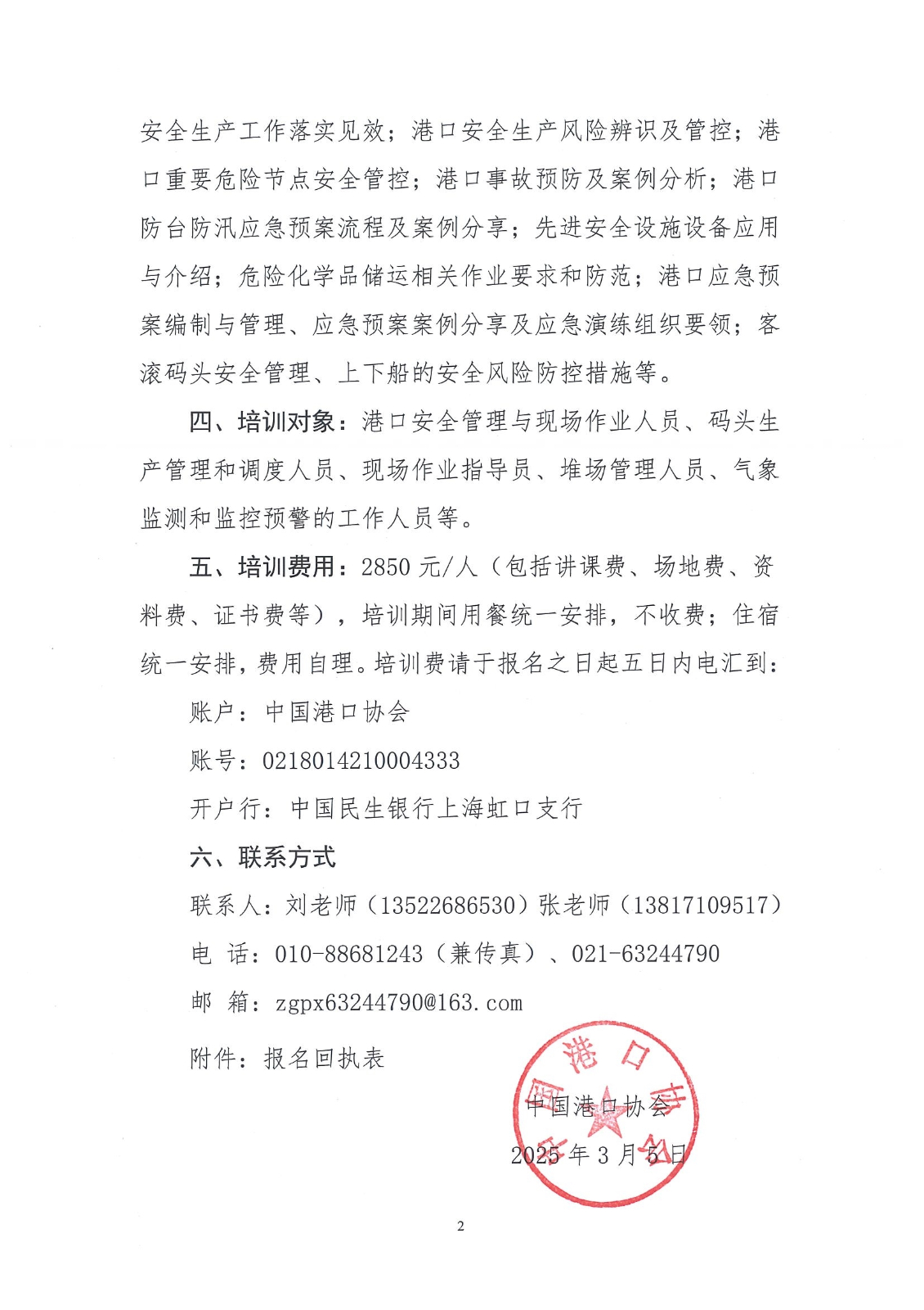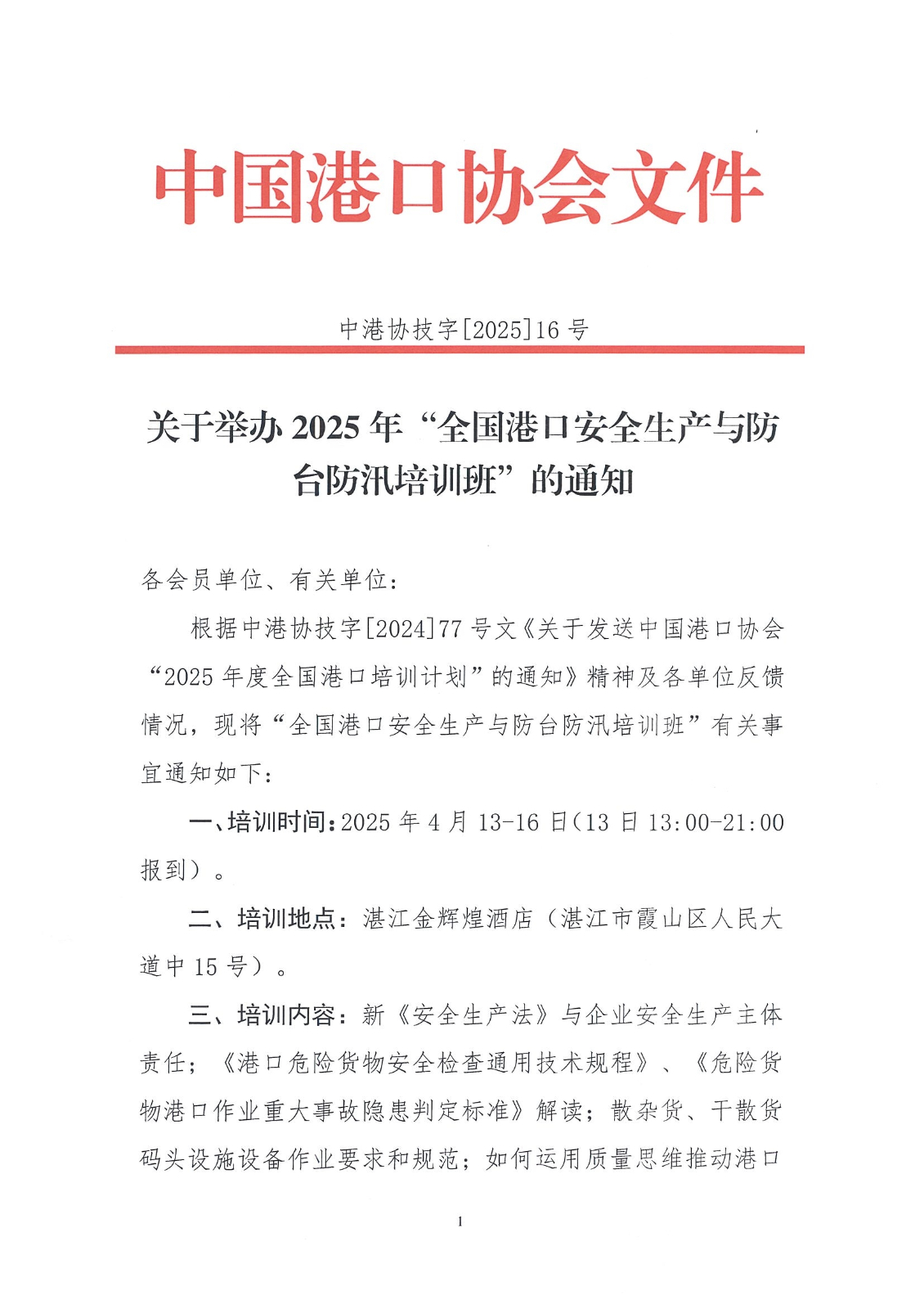 关于举办2025年“全国港口安全生产与防台防汛培训班”的通知