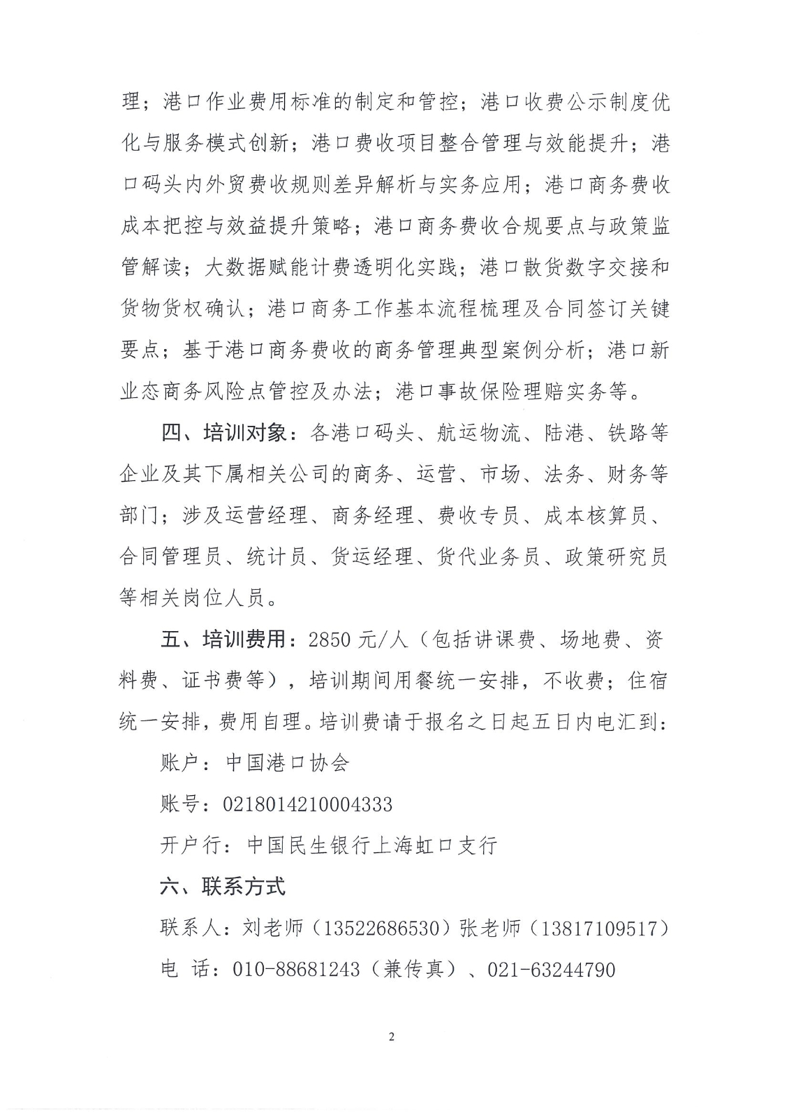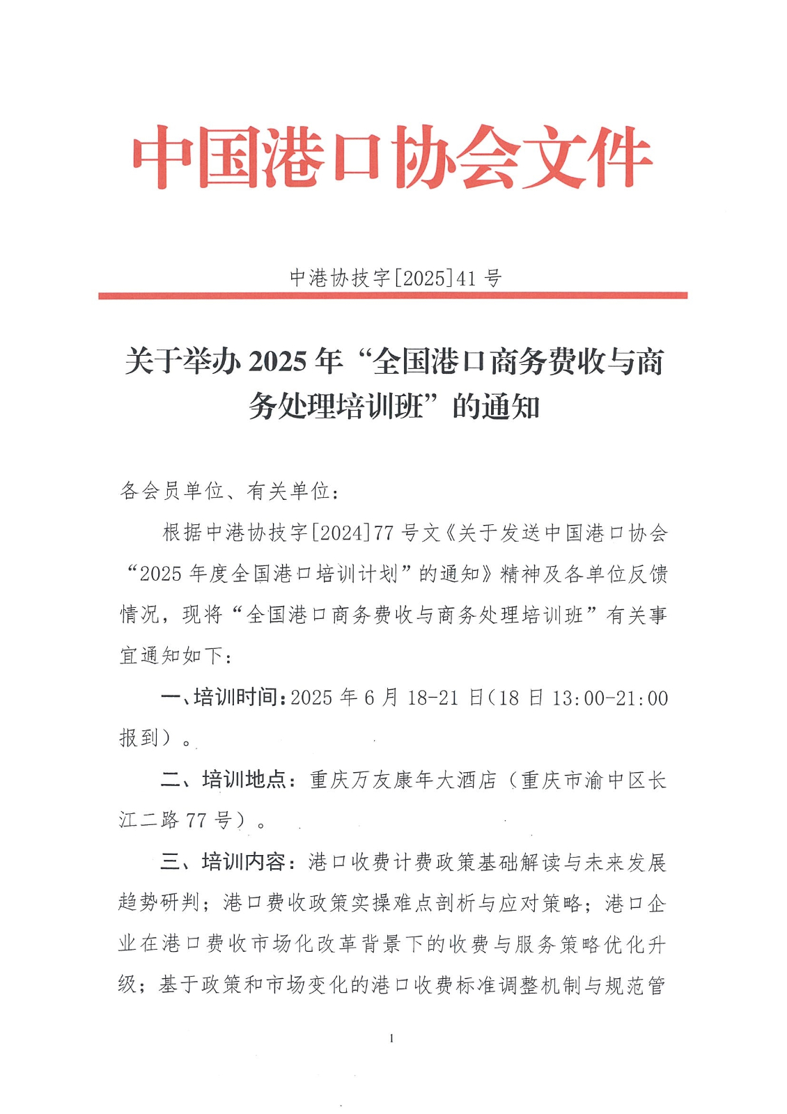 关于举办2025年“全国港口商务费收与商务处理培训班”的通知