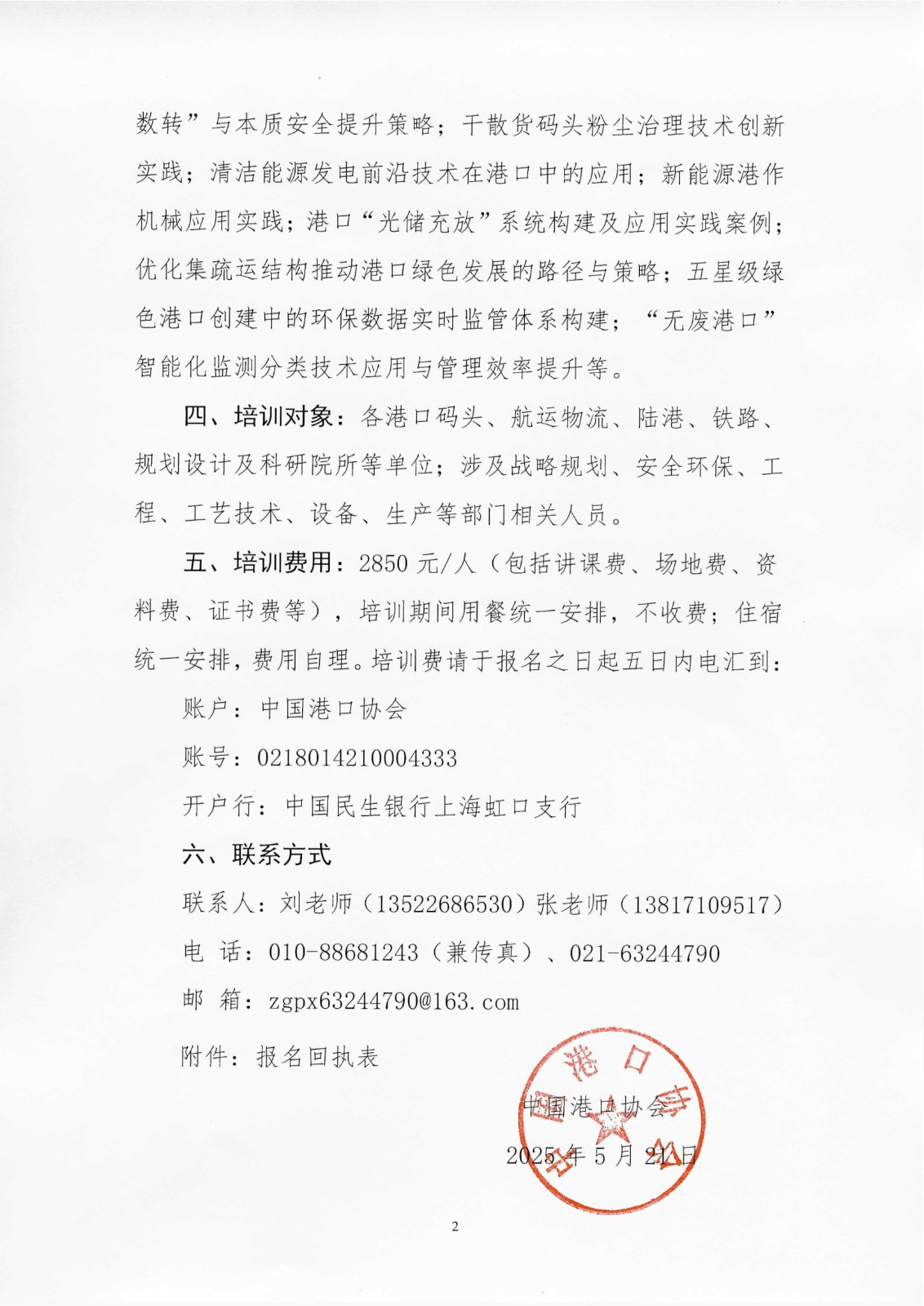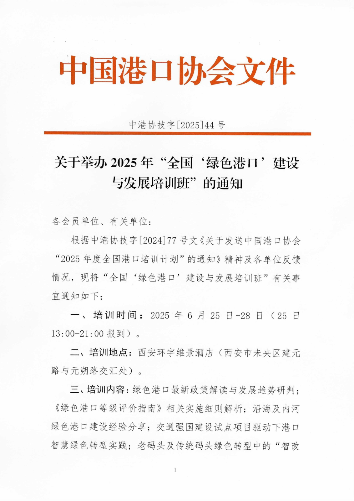 关于举办2025年“全国‘绿色港口’建设与发展培训班”的通知
