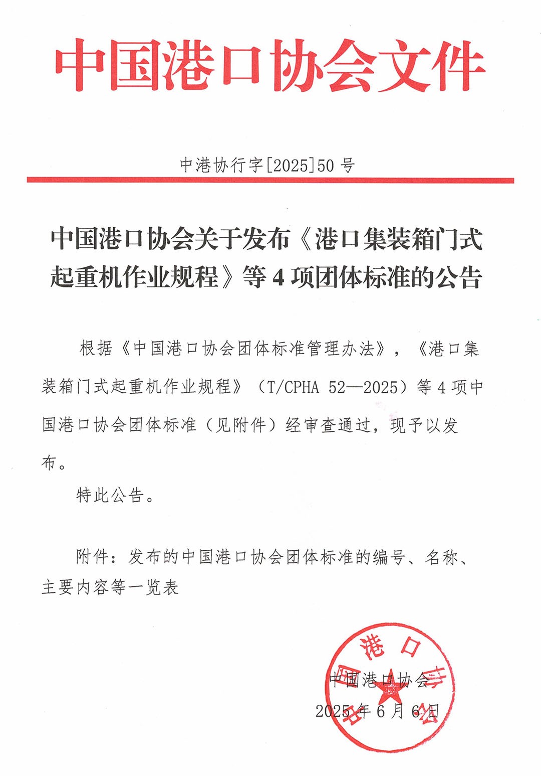 原文下载:87978797威尼斯关于发布《港口集装箱门式起重机作业规程》等4项团体标准的公告.pdf