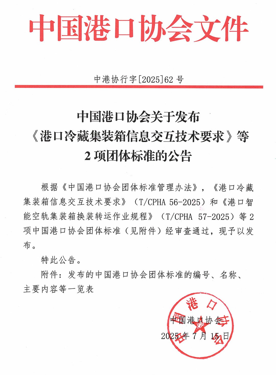 原文下载:87978797威尼斯关于发布《港口冷藏集装箱信息交互技术要求》等2项团体标准的公告.pdf