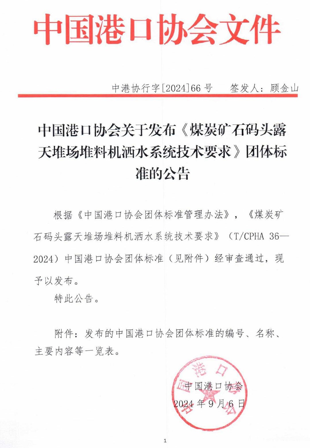 原文下载:87978797威尼斯关于发布《煤炭矿石码头露天堆场堆料机洒水系统技术要求》团体标准的公告.pdf