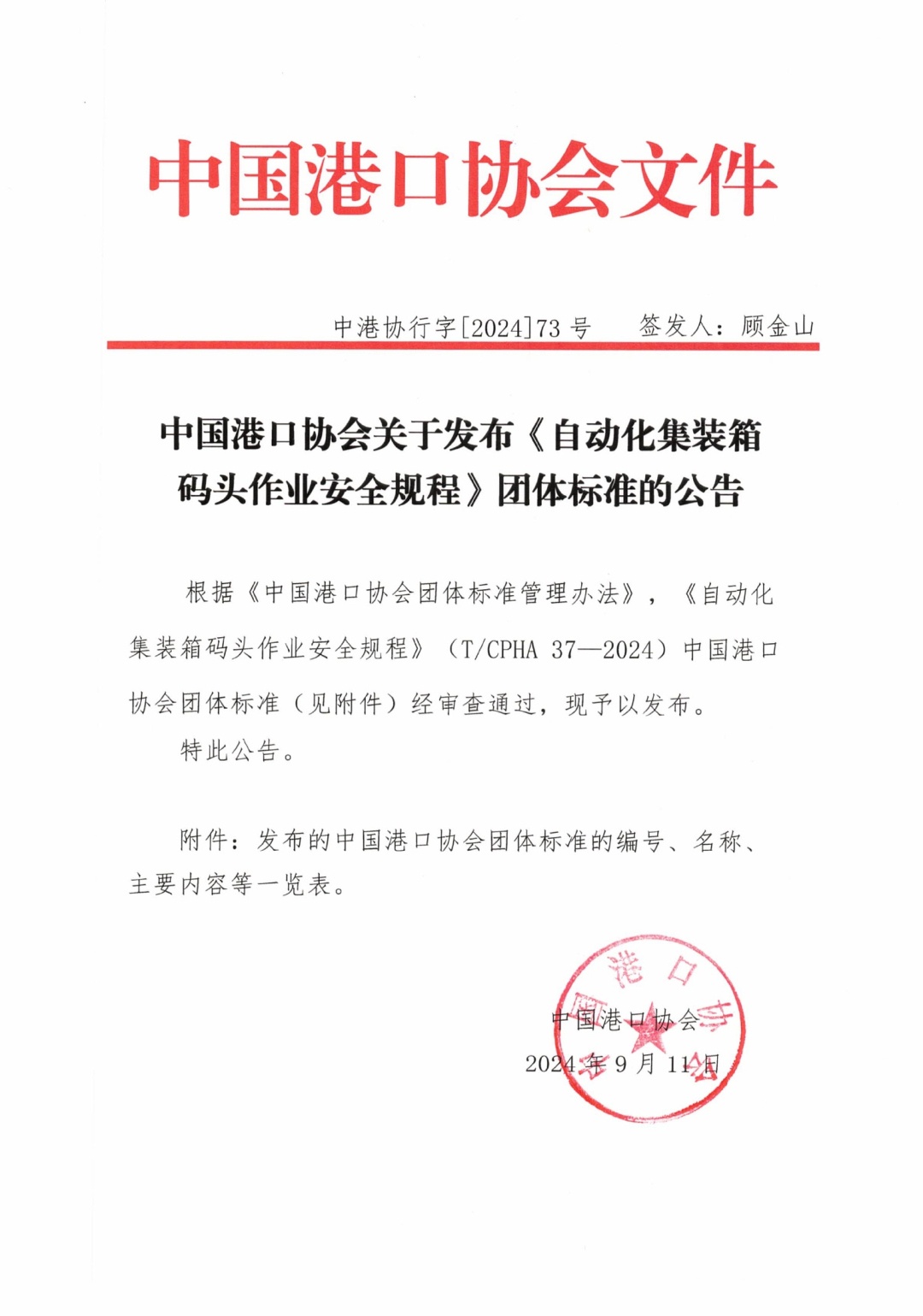 原文下载:87978797威尼斯关于发布《自动化集装箱码头作业安全规程》团体标准的公告.pdf