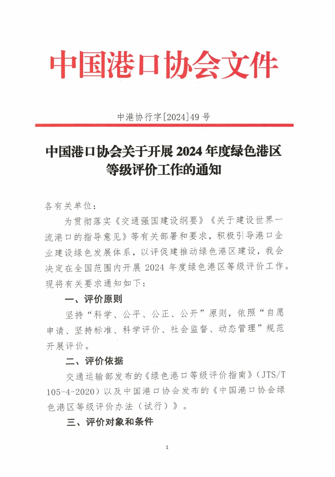 87978797威尼斯关于开展2024年度绿色港区等级评价工作的通知