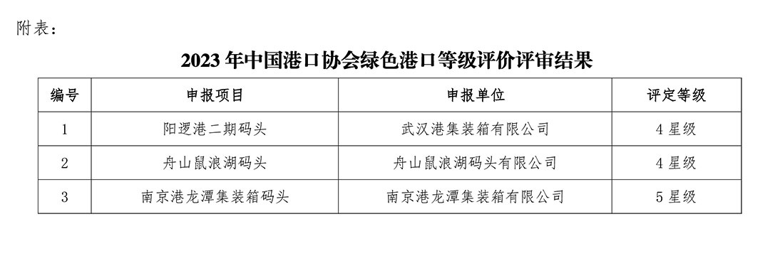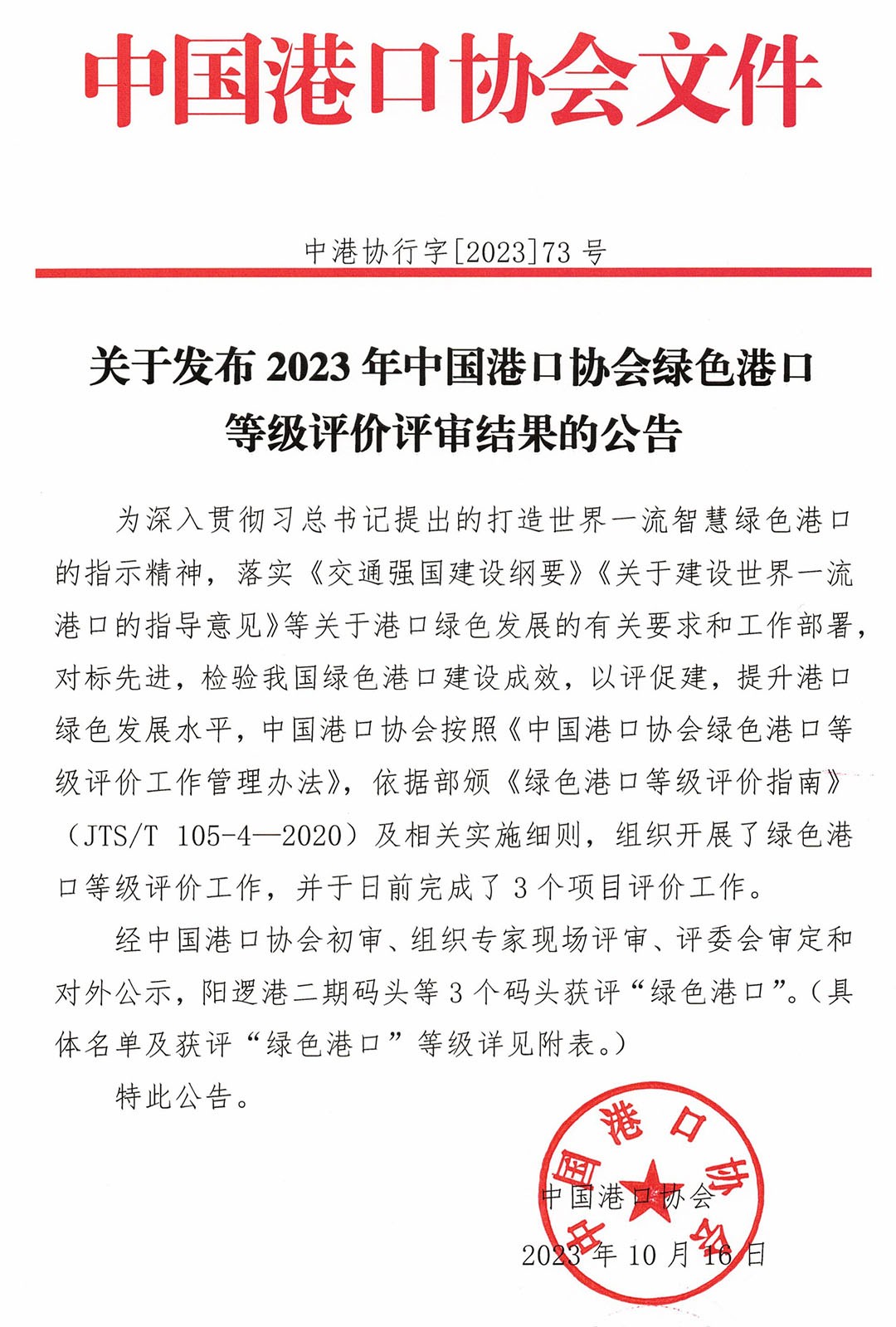 原文下载:关于发布2023年87978797威尼斯绿色港口等级评价评审结果的公告.pdf