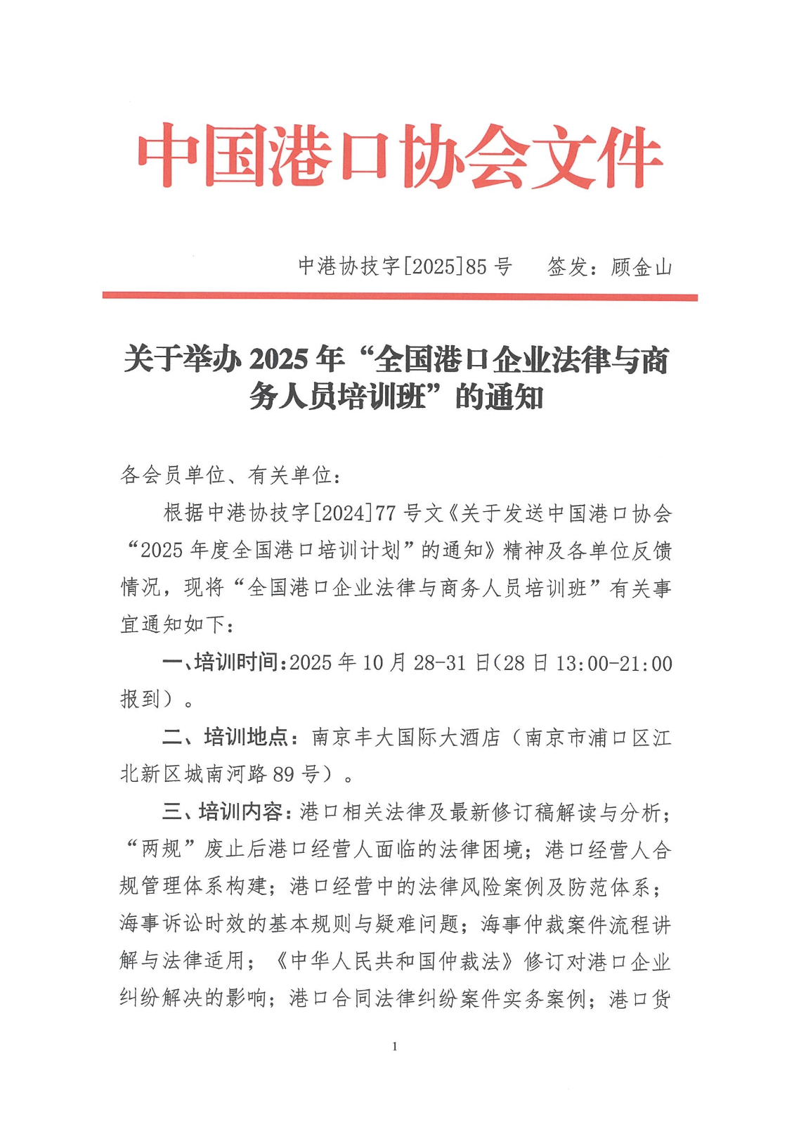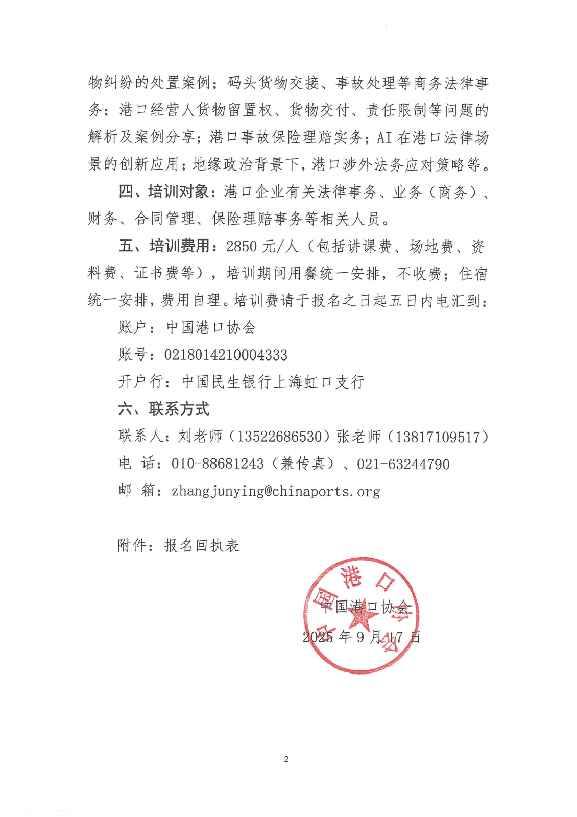 关于举办2025年“全国港口企业法律与商务人员培训班”的通知