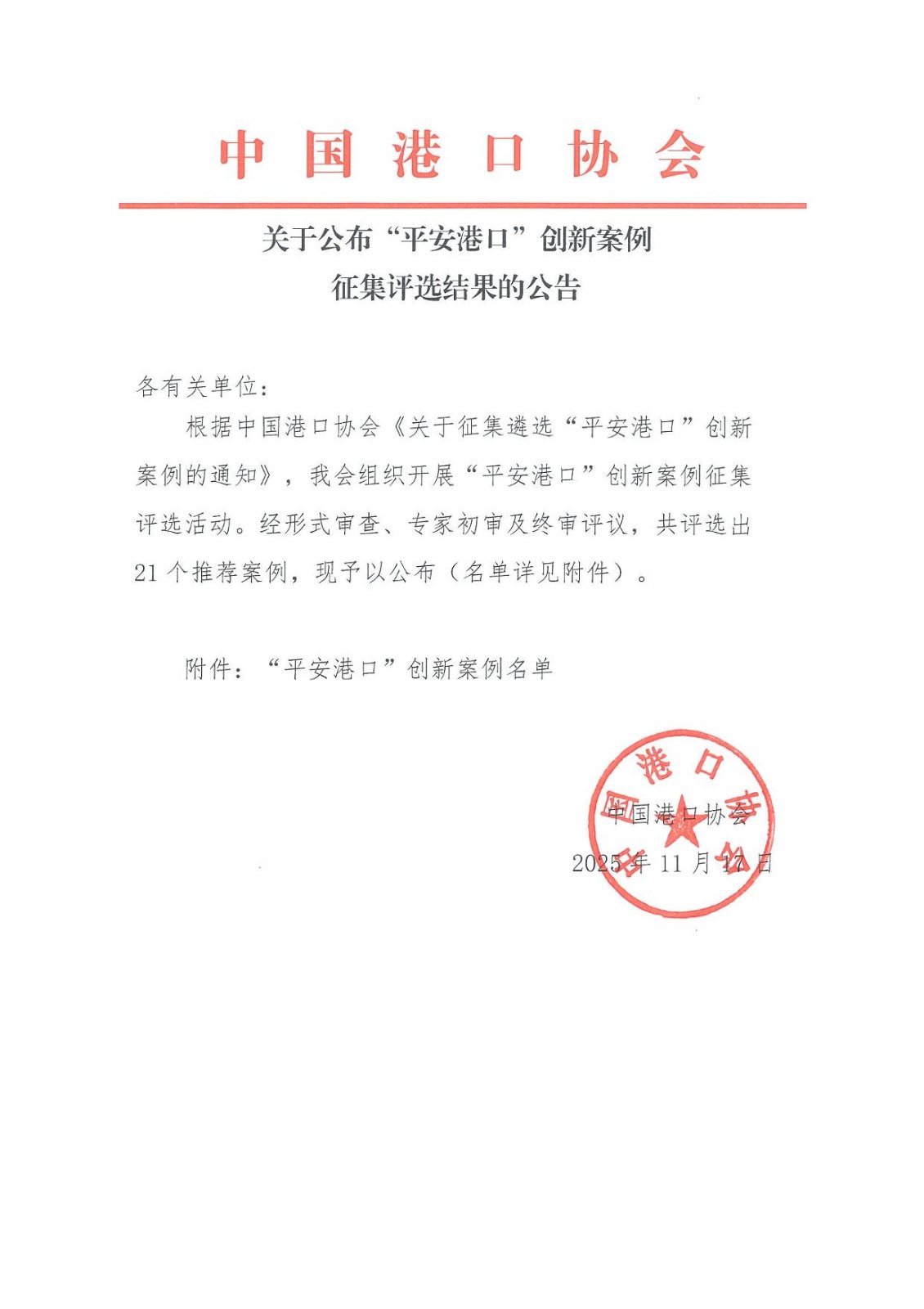 原文下载:关于公布“平安港口”创新案例征集评选结果的公告.pdf